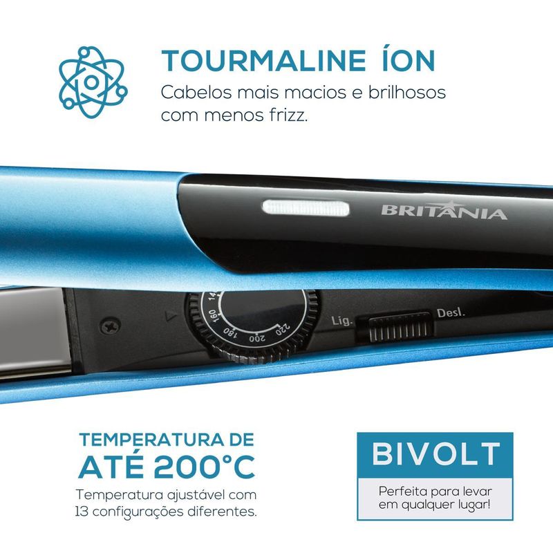 Prancha Britânia Cordão Giratório 220ºC Titanium Blue - Bivolt