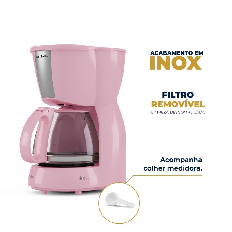 CozinhaCafeteirasCafeteira Rosa Britânia 15 Xícaras 550W Inox BCF15