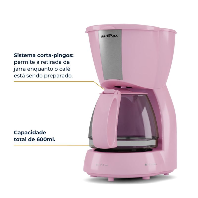 Cafeteira Rosa Britânia 15 Xícaras 550W Inox BCF15