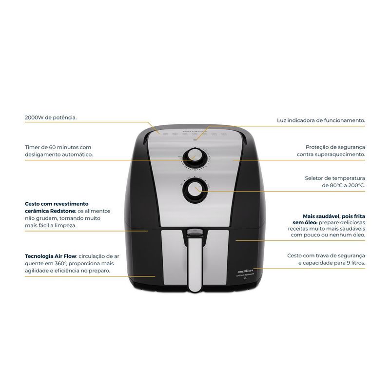 Air Fryer Britânia 9L Antiaderente Redstone 2000W BAF90A