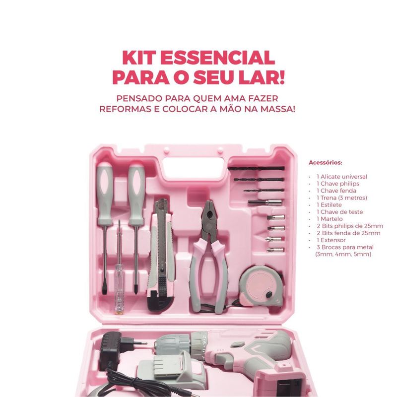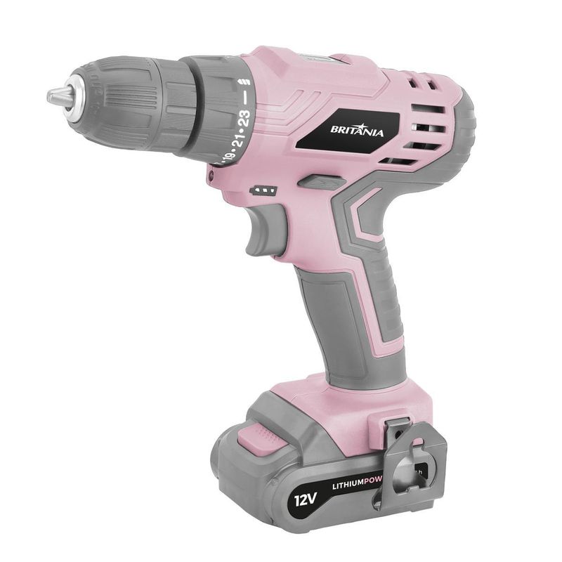 Parafusadeira Rosa Britânia 15 acessórios 2 em 1 BPFE12R